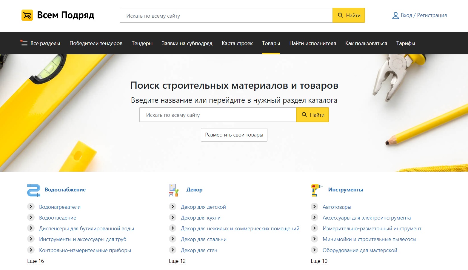 Раздел «Тендеры» – то, что нужно многим на портале. Тут собраны закупки строительных проектов, от малых до крупных. Платформа показывает информацию о тендерах на работы, поставки материалов, проектирование, а также инженерные и монтажные услуги.